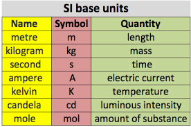 metre (m) The metre is the length of the path travelled by light in vacuum during a time interval of 1/299 792 458 of a second. kilogram (kg) The kilogram is the mass of the platinum-iridium prototype which was approved by the Conférence Générale des Poids et Mesures, held in Paris in 1889, and kept by the Bureau International des Poids et Mesures. second (s) The second is the duration of 9 192 631 770 periods of the radiation corresponding to the transition between the two hyperfine levels of the ground state of the caesium 133 atom. ampere (A) The ampere is the intensity of a constant current which, if maintained in two straight parallel conductors of infinite length, of negligible circular cross-section, and placed 1 metre apart in vacuum, would produce between these conductors a force equal to 2 x 10-7 newton per metre of length. kelvin (K) The kelvin is the fraction 1/273,16 of the thermodynamic temperature of the triple point of water. candela (cd) The candela is the luminous intensity, in a given direction, of a source that emits monochromatic radiation of frequency 540 x 1012 hertz and that has a radiant intensity in that direction of 1/683 watt per steradian mole (mol) The mole is the amount of substance of a system which contains as many elementary entities as there are atoms in 0,012 kilogram of carbon 12.